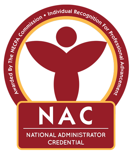 Developed for center directors, emerging leaders and child care professionals, the National Administrator Credential (NAC)® is a comprehensive, 45 hour course conducted on-site and online, and is an award for demonstrated mastery of child care administration skills. The NAC® is recognized as a mark of excellence that designates professionals who have demonstrated the knowledge that is essential for managing a child care program.